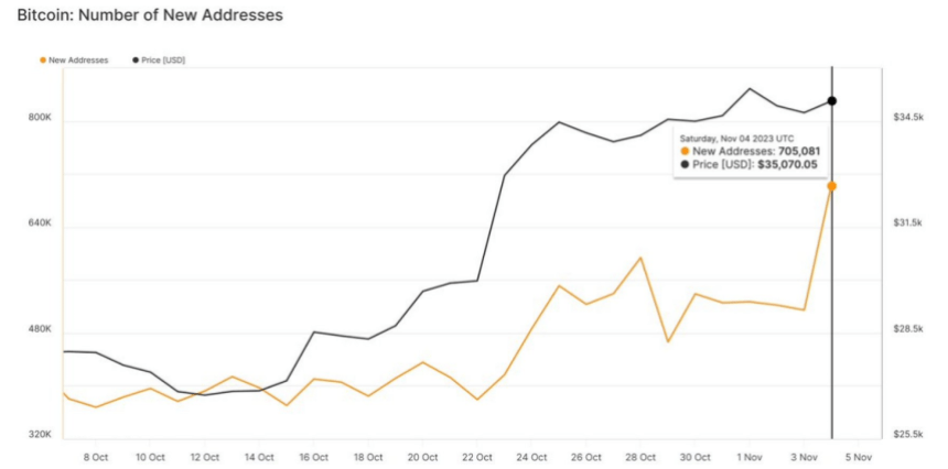 In simply someday, a whopping 700,000 new BTC addresses joined the community. This enlargement is taken into account one of the dependable indicators for worth predictions.