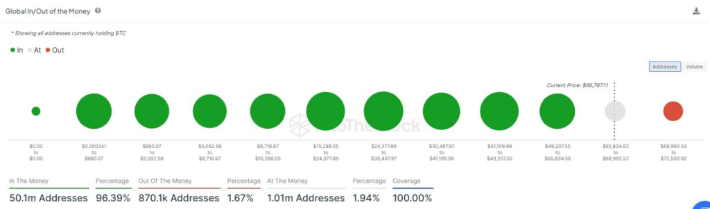 In keeping with analysts, investor sentiment has been damage by a sequence of descending peaks and failed upturns, whereas promoting stress stays rampant as we strategy the “weekly candle shut.” This sentiment is echoed by knowledge from IntoTheBlock, which reveals a pointy decline within the variety of addresses “Within the Cash,” signifying a lower in general profitability inside the Bitcoin community.