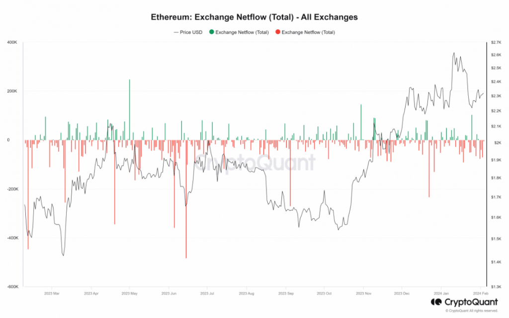 In response to blockchain analytics agency IntoTheBlock, a staggering $500 million value of ETH exited exchanges final week, contributing to a complete outflow of $1.2 billion for the complete month of January. This represents a significant shift in comparison with earlier months, elevating questions in regards to the motivations behind this development.