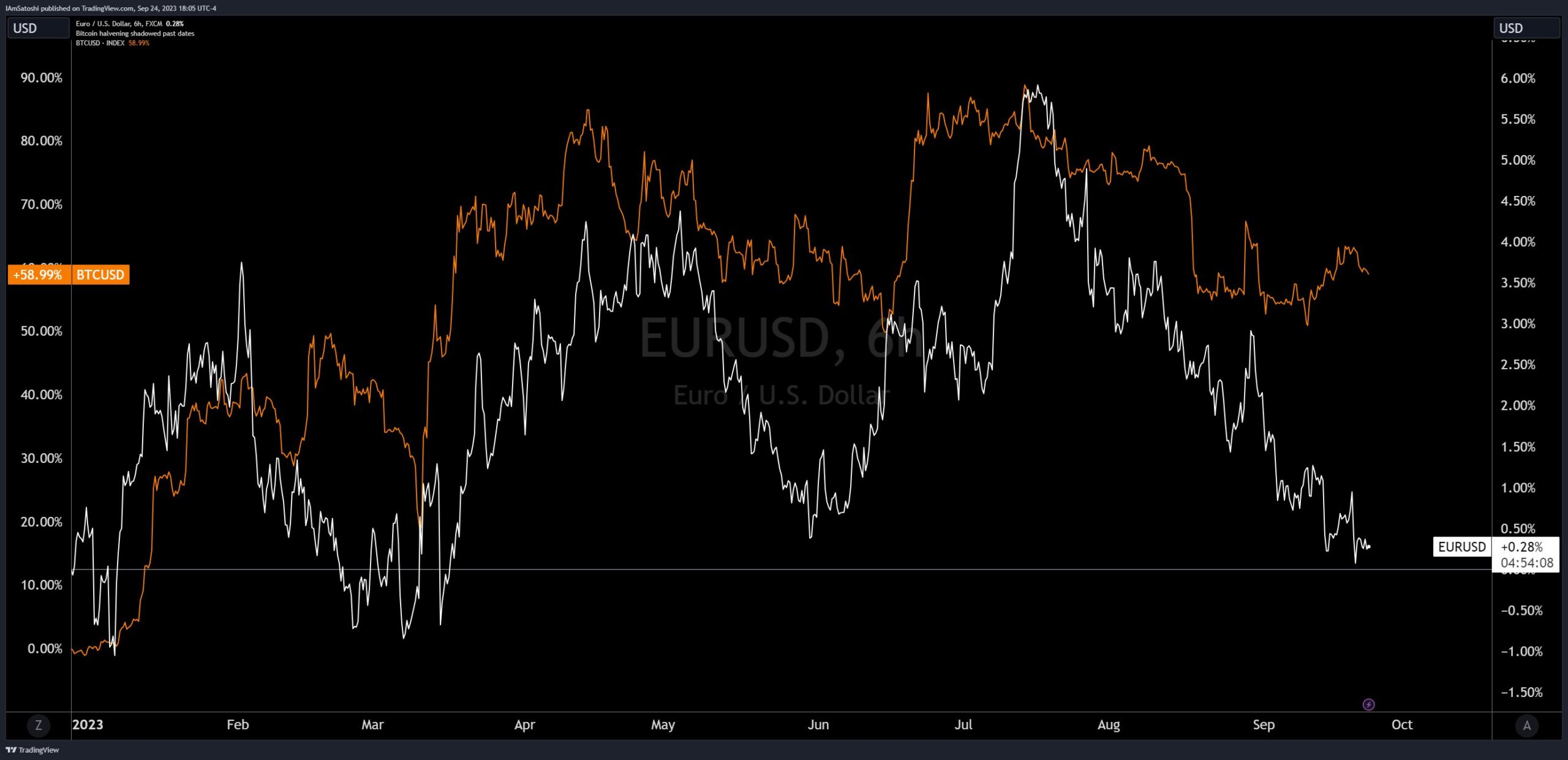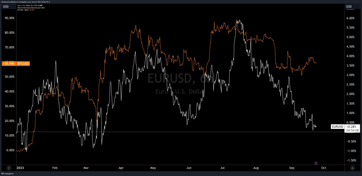 Bitcoin vs. EURUSD | Supply: X @CarpeNoctom