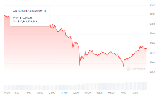 Bitcoin worth motion within the final day. Supply: Coingecko